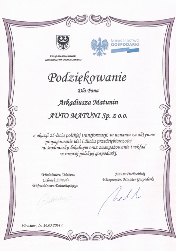 Firma Auto-Matunin działa na rynku motoryzacyjnym od 1978 roku. Po prawie 40 latach działalności, zdobytym doświadczeniu i ciągłym rozwoju firmy cały czas doskonalimy i umacniamy swoją pozycję na rynku szeroko pojętych usług motoryzacyjnych. Siedziba Spółki w Jelczu-Laskowicach zajmuje 4,5 ha powierzchni. Zostały na niej wybudowane trzy hale, w których świadczymy usługi napraw, remontów, serwisowania i lakierowania wszelkich samochodów osobowych, dostawczych i pojazdów użytkowych.