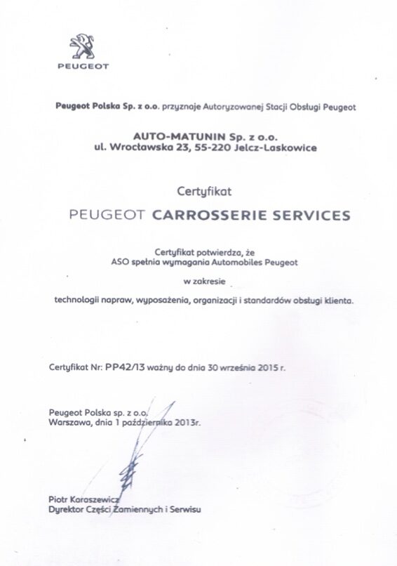 2012: Otwarcie salonu sprzedaży i autoryzowanego serwisu oraz serwis blacharsko-lakierniczego samochodów marki Peugeot.