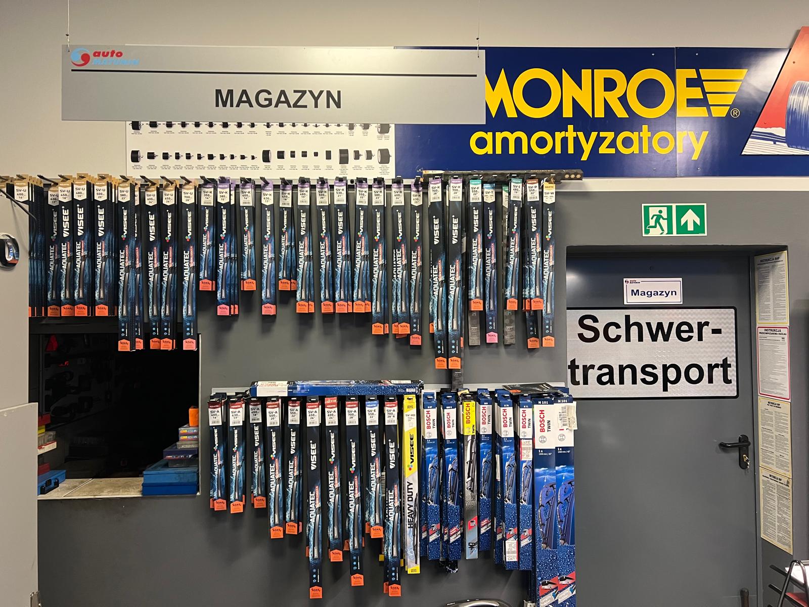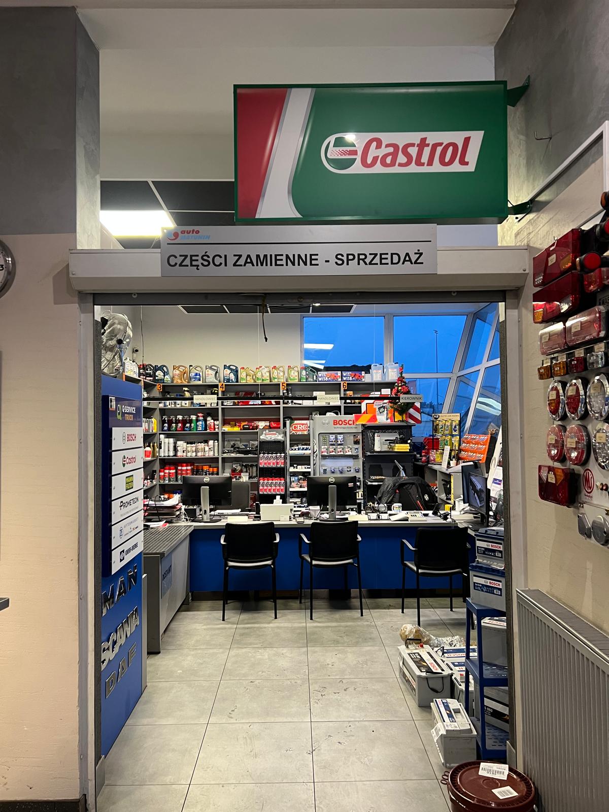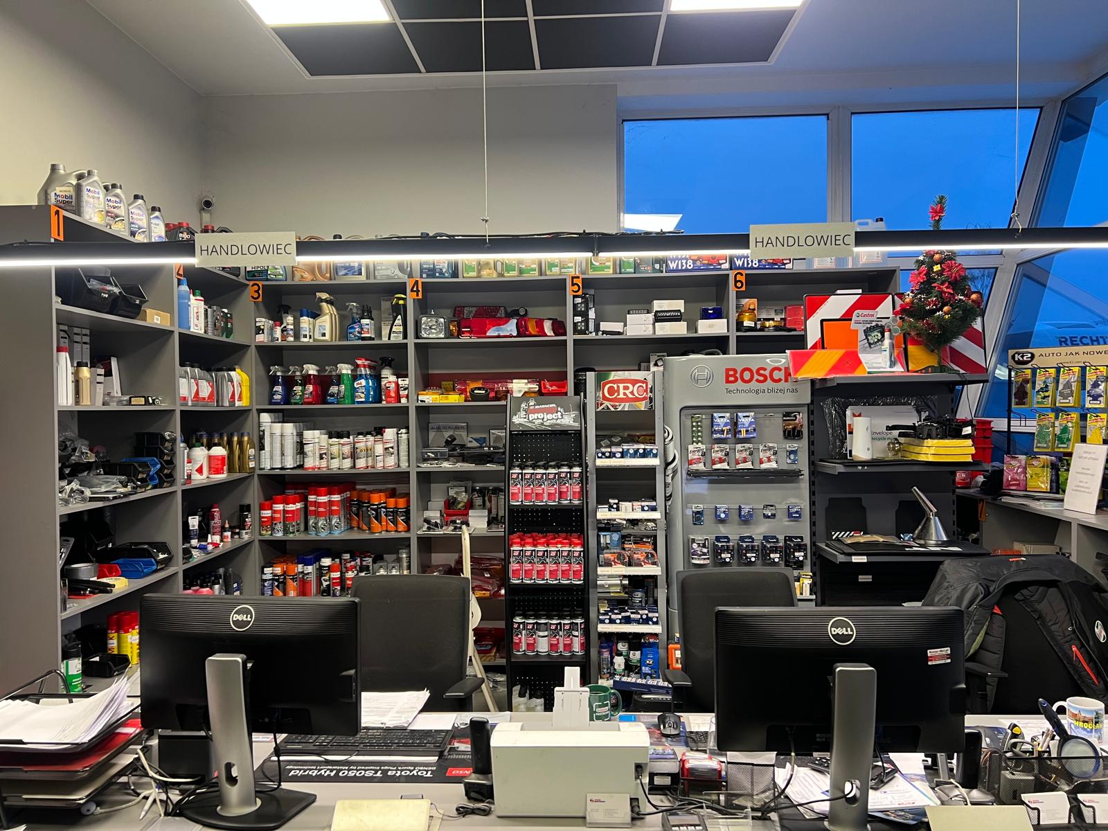 Dysponujemy magazynem części zamiennych w większości dostępnych od ręki: oleje, filtry, klocki, paski, lampy, tłumiki, akumulatory, wycieraczki, złącza, chemia motoryzacyjna itp.